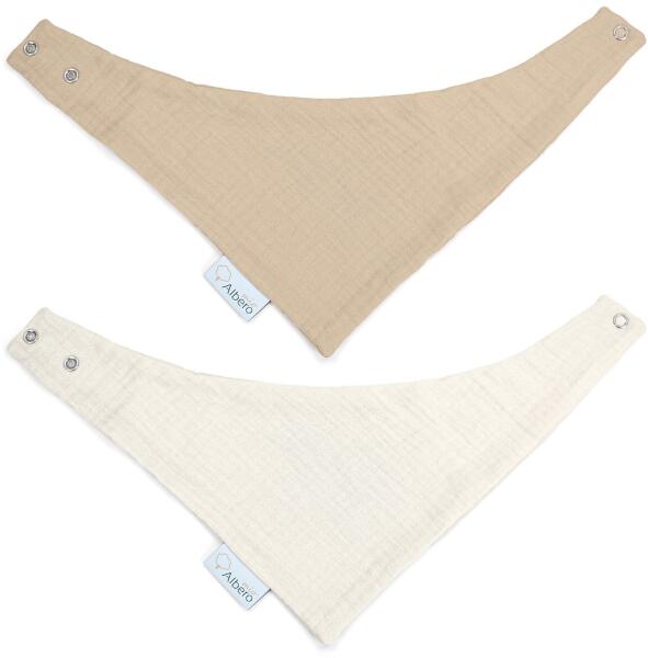 A Albero Mio előke két háromszög alakú, semleges színű sálból álló készlet, a funkcionalitás és a puhaság kombinációja, amelyet a szülők és a gyerekek értékelni fognak.