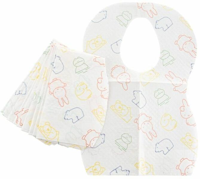 Az eldobható előke nagyszerű alternatívája a hagyományos pamut előkének. Ideálisak otthonra és utazásra.  Speciális zsebük van, amely megakadályozza a nagyobb ételdarabok leesését.