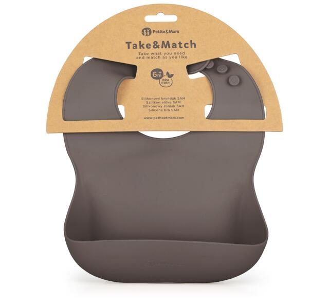 Petite&Mars TAKE&MATCH Szilikon előke zsebbel, Bitter Cocoa